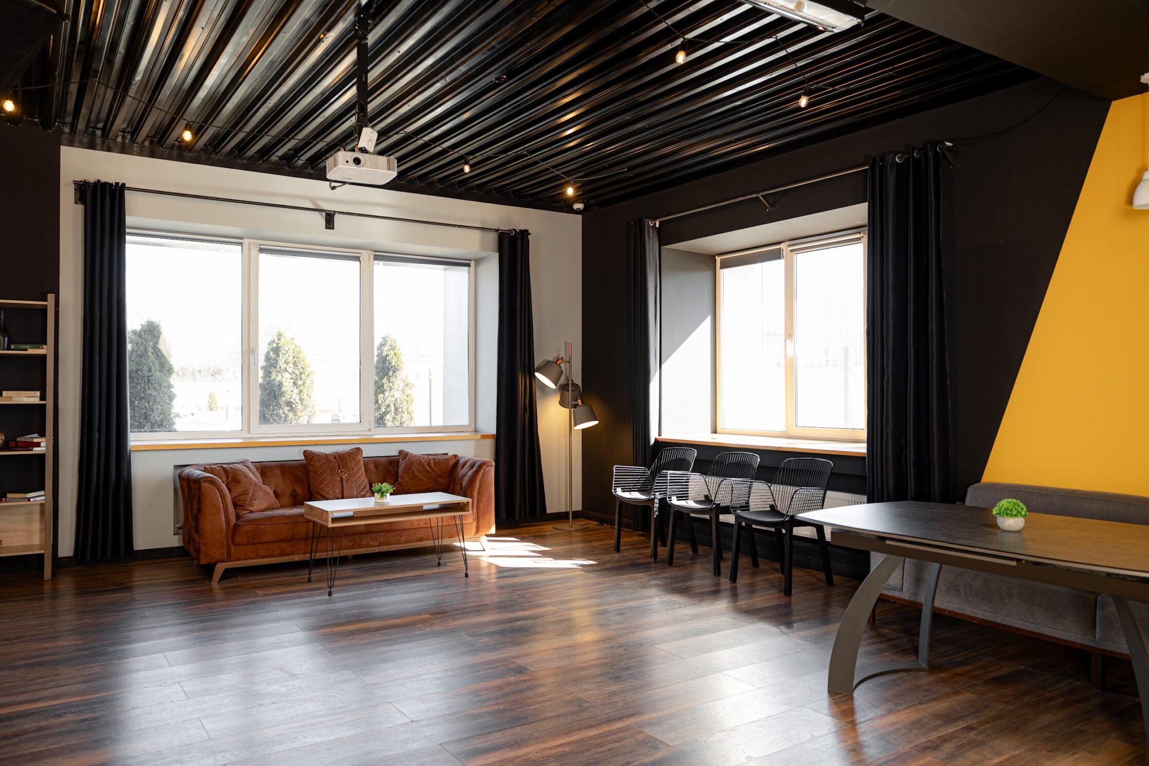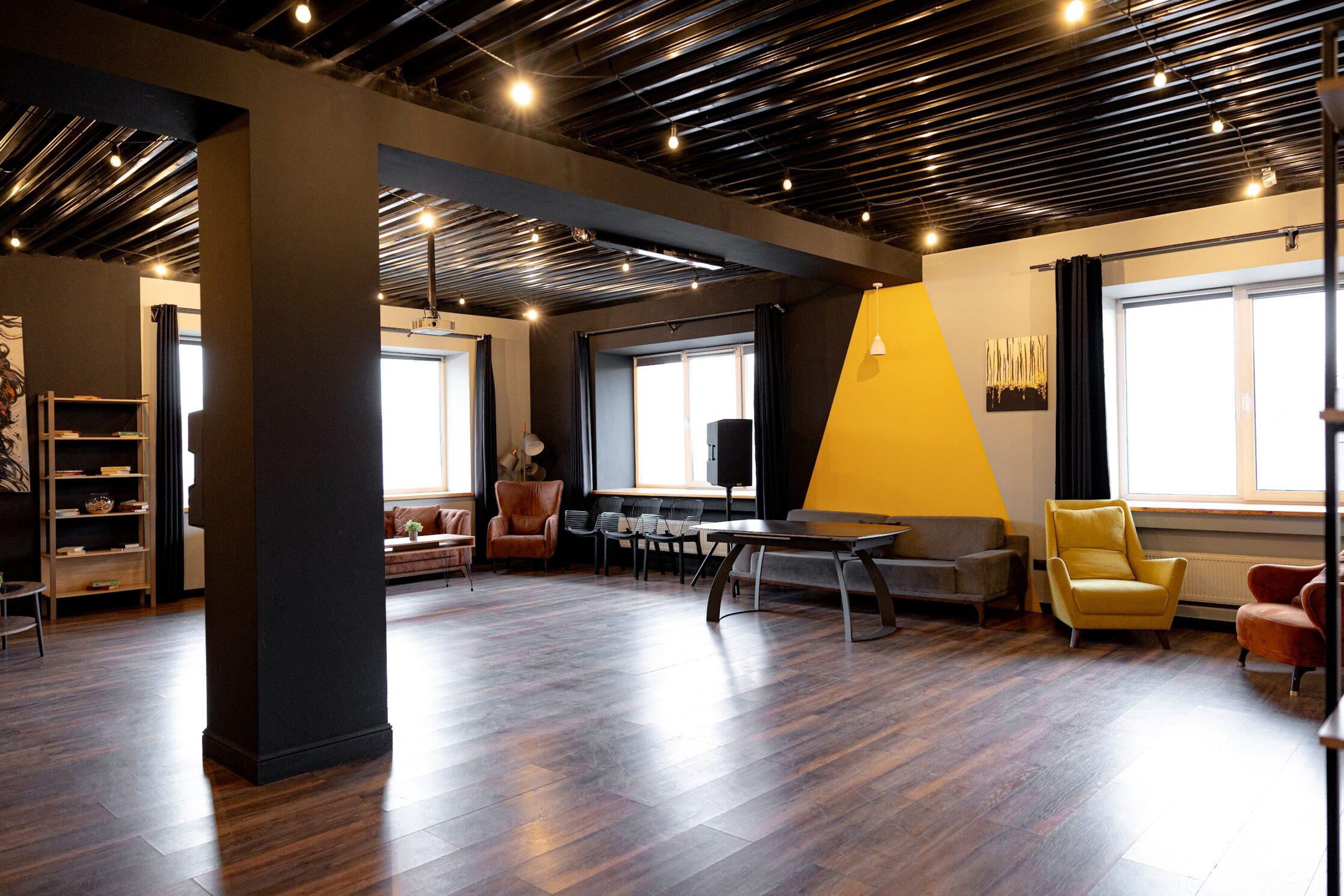 Атмосфера бизнес-клуба для рабочих сессий, зона для кофе-брейков и нетворкинга.