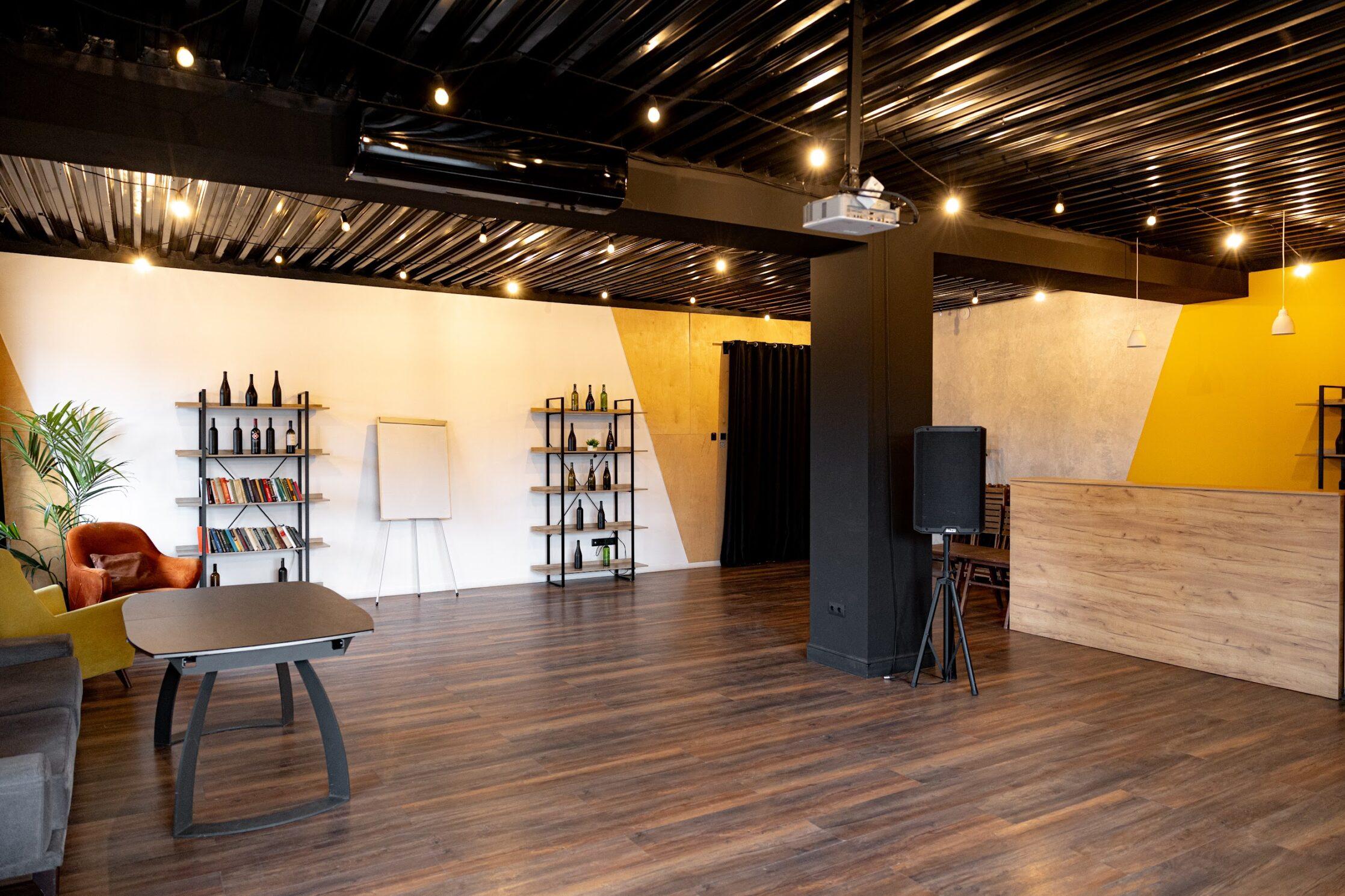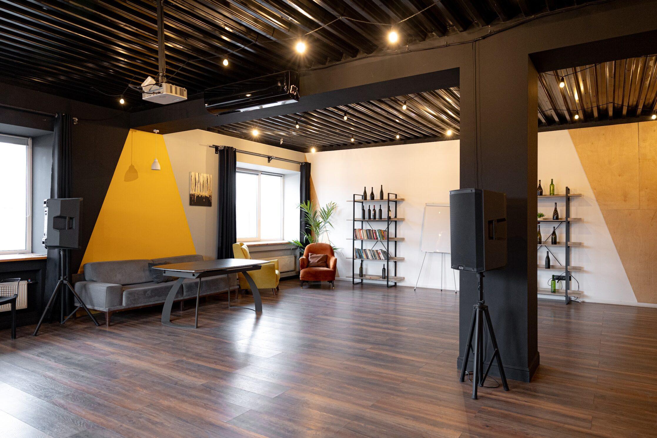 Большой зал площадью 86 м², идеален для лекций, мастер-классов, услуг тренинга, просмотра фильмов и, конечно, съемок. Он также подходит для конференций, семинаров, деловых бизнес встреч благодаря своей вместимости: зал вмещает до 50 человек. Для проведения мероприятий, в зале расположены: DJ-микшер, барная стойка, 2 большие колонки, проектор и многое другое.